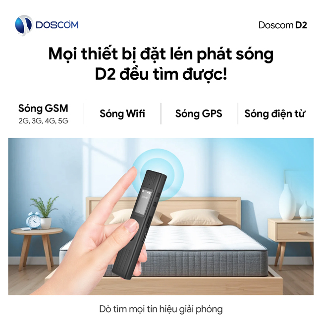 Thiết bị D2 hỗ trợ dò tìm nhiều loại sóng khác nhau như sóng GSM (2G, 3G, 4G, 5G), sóng GPS, sóng wifi và sóng điện tử. Tính năng này giúp phát hiện các thiết bị giám sát sử dụng các loại sóng khác nhau, đảm bảo an ninh và riêng tư tuyệt đối cho người dùng.